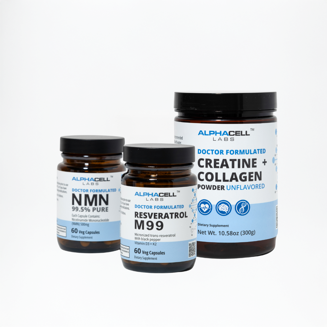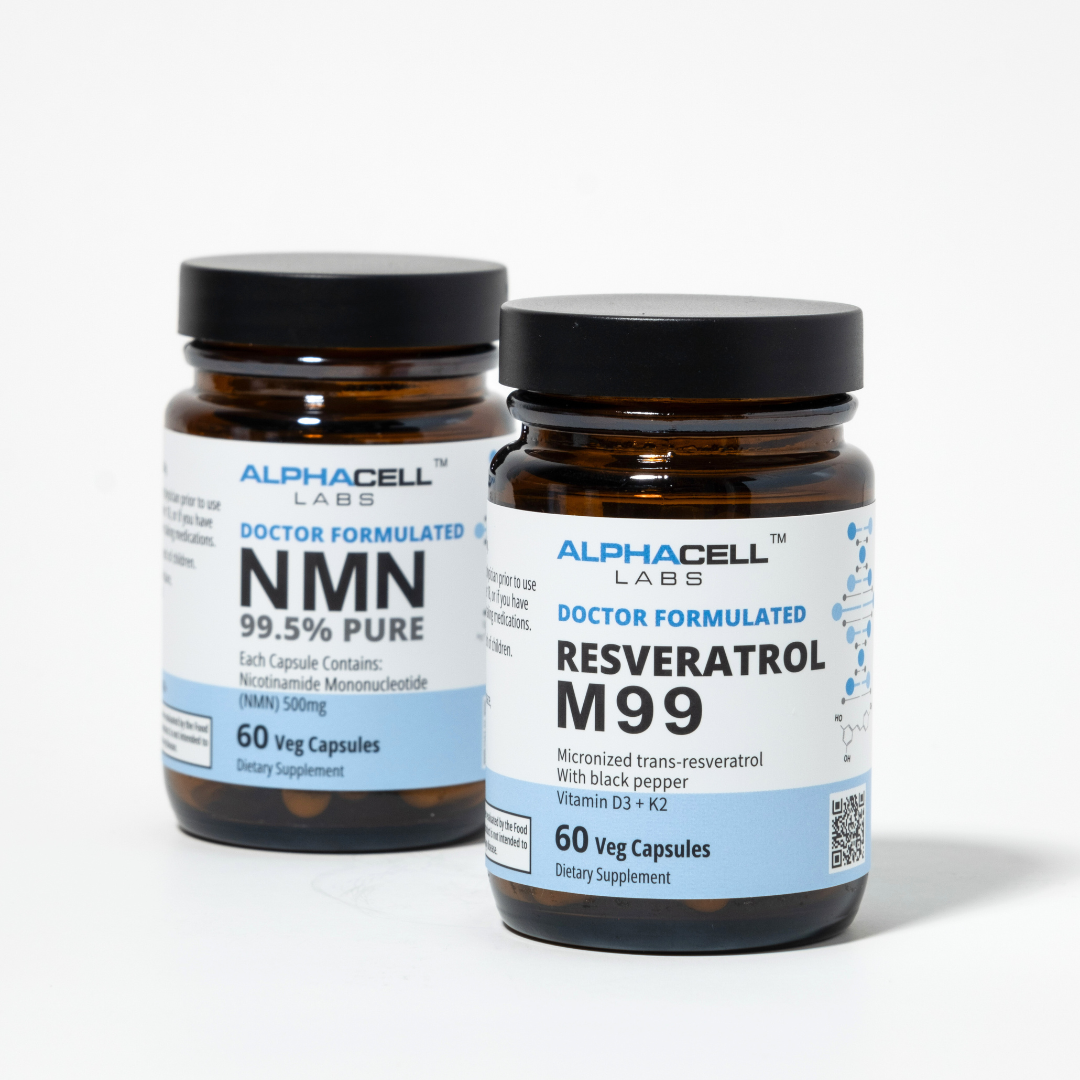 This is the ultimate performance "stack" because Resveratrol acts as the "accelerator" for NMN's "fuel" . NMN boosts your NAD+ levels, and M99 (Resveratrol) activates the sirtuins ("longevity genes") that use that NAD+ to support cellular repair and metabolic health. Our Peak Performance Stack combines them for this exact synergistic effect.
