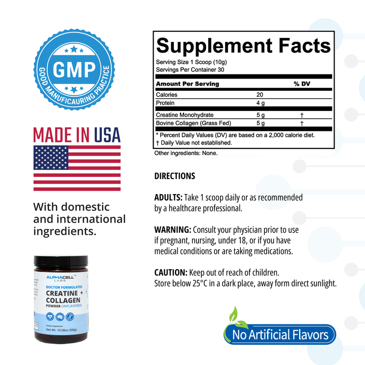AlphaCell Creatine & Collagen 300 g - 10.58 oz. 30 Servings