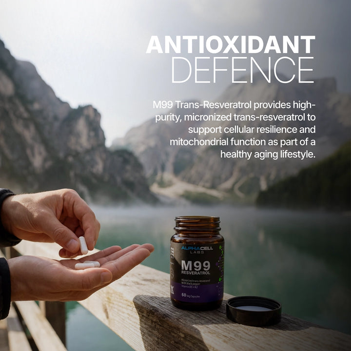 Not all Resveratrol is created equal. Many products use impure forms that your body can't absorb. Our Doctor-Formulated M99 uses 99% Pure Trans-Resveratrol, Micronized for enhanced absorption, and Amplified with Black Pepper. It is 3rd Party Tested for purity and potency.